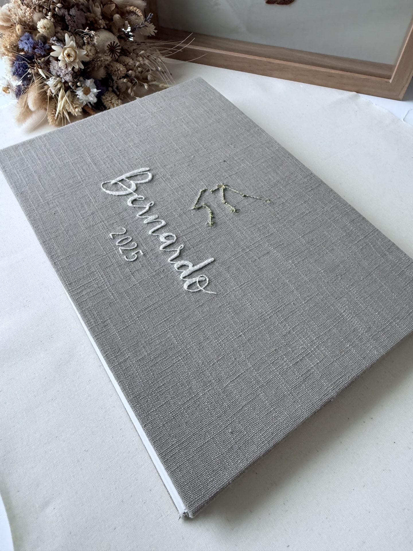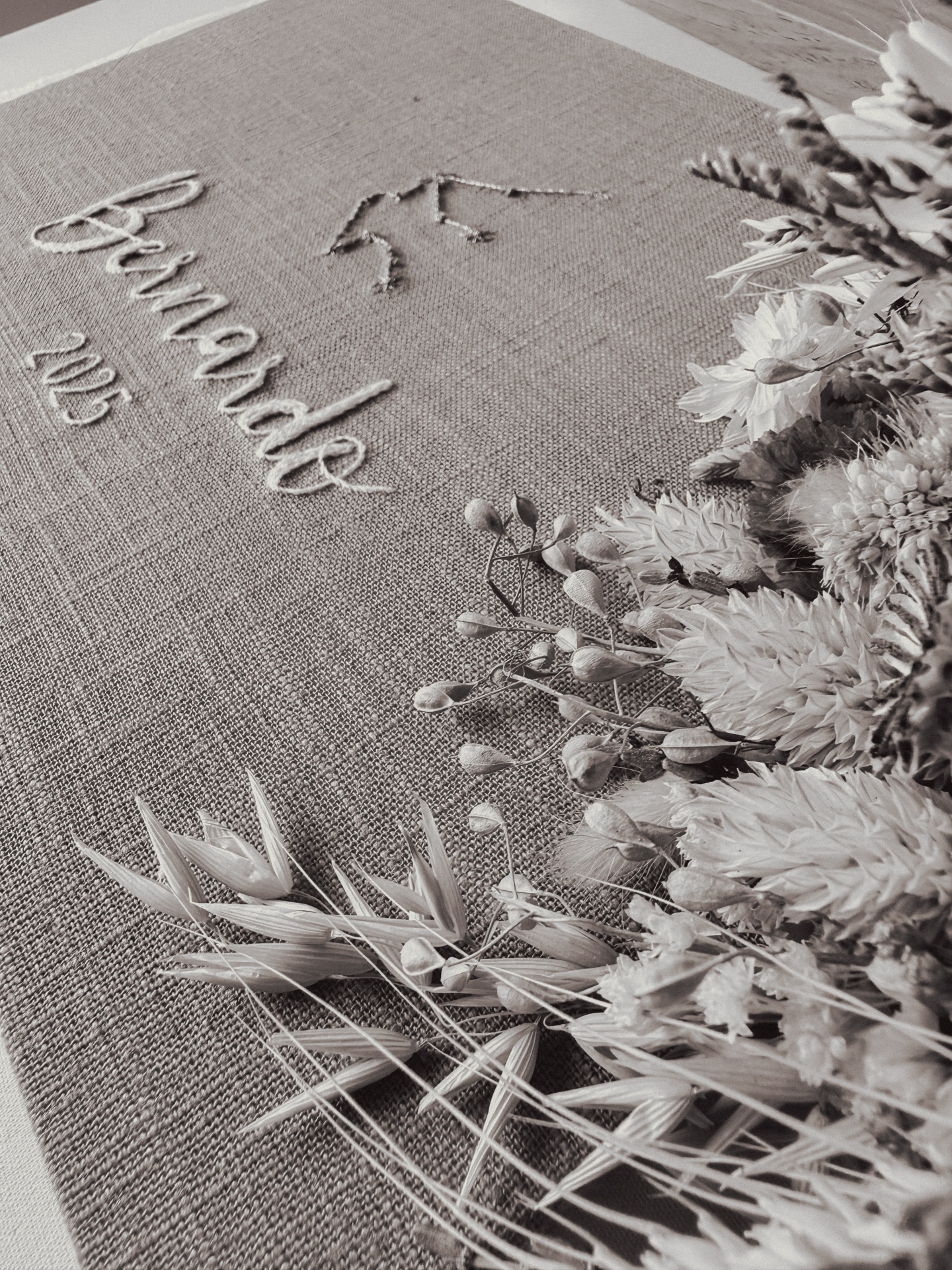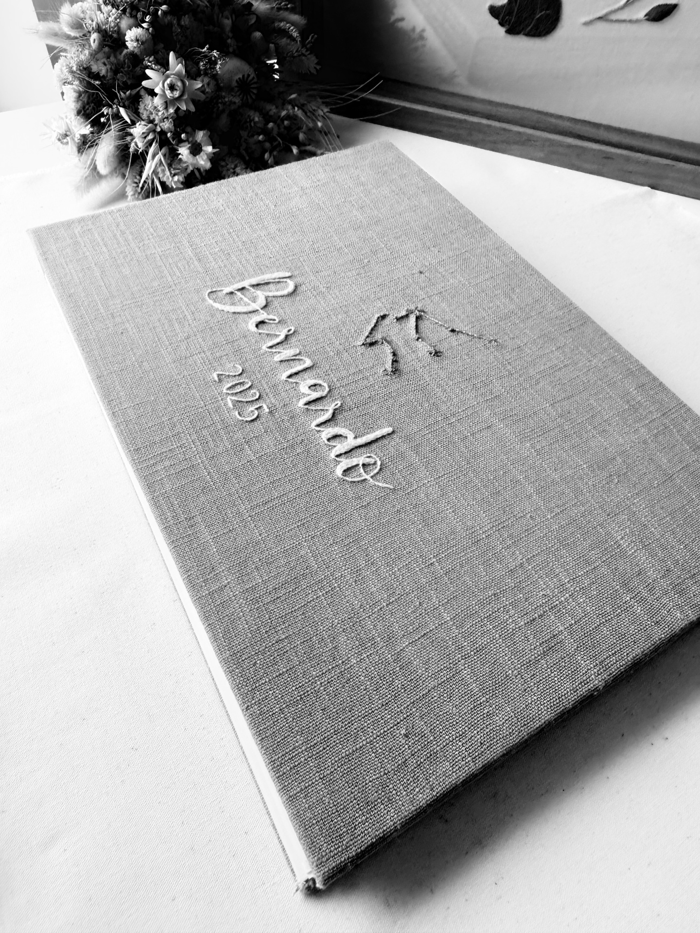 Cada momento marcante da sua vida merece ser preservado com delicadeza e significado. Os nossos álbuns com capa em tecido, cuidadosamente bordados à mão, são concebidos para eternizar memórias de casamento, aniversários ou maternidade de forma distinta e personalizada.