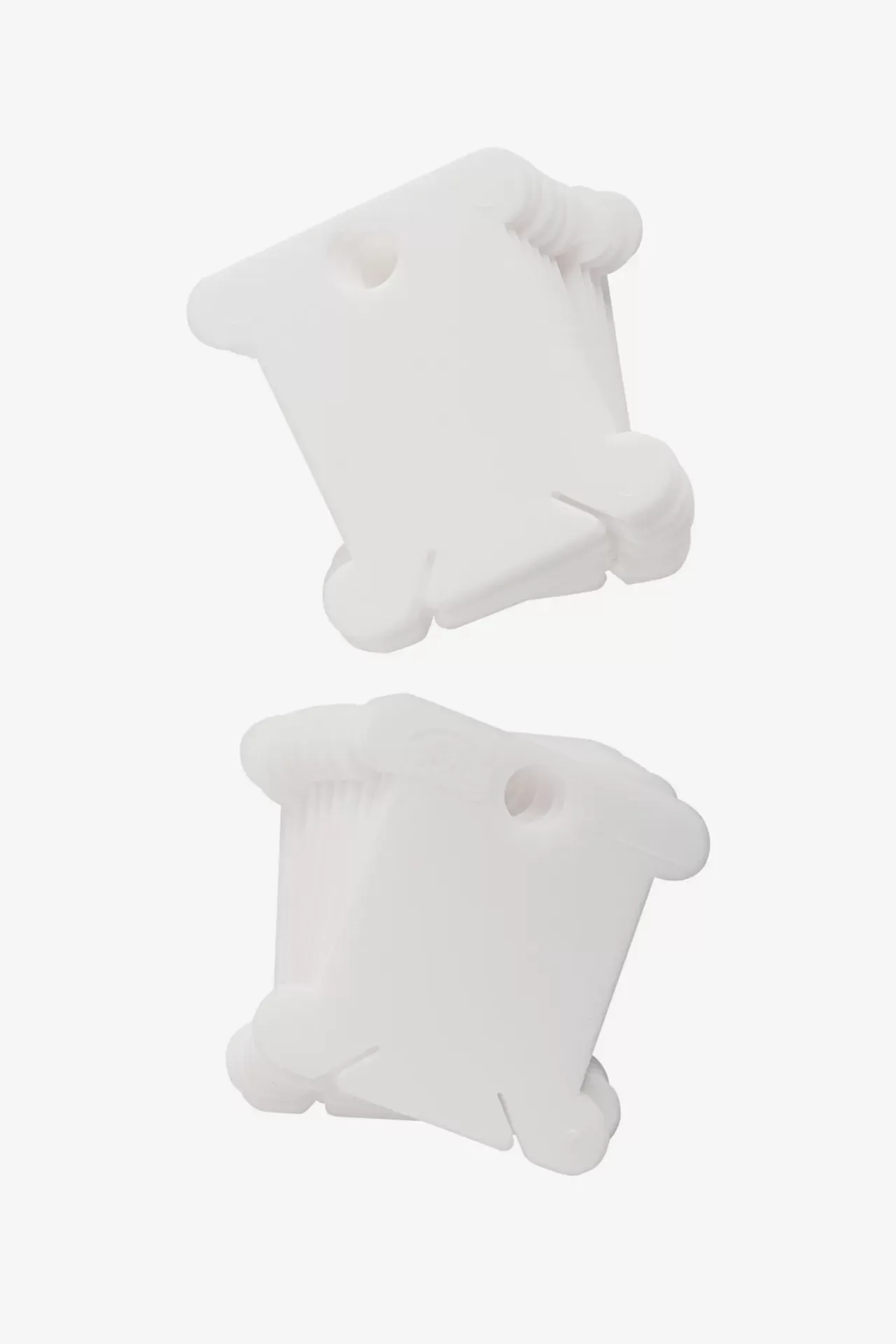 Os cartões de plástico permitem ordenar as meadas, enrolando-as à volta do cartão.