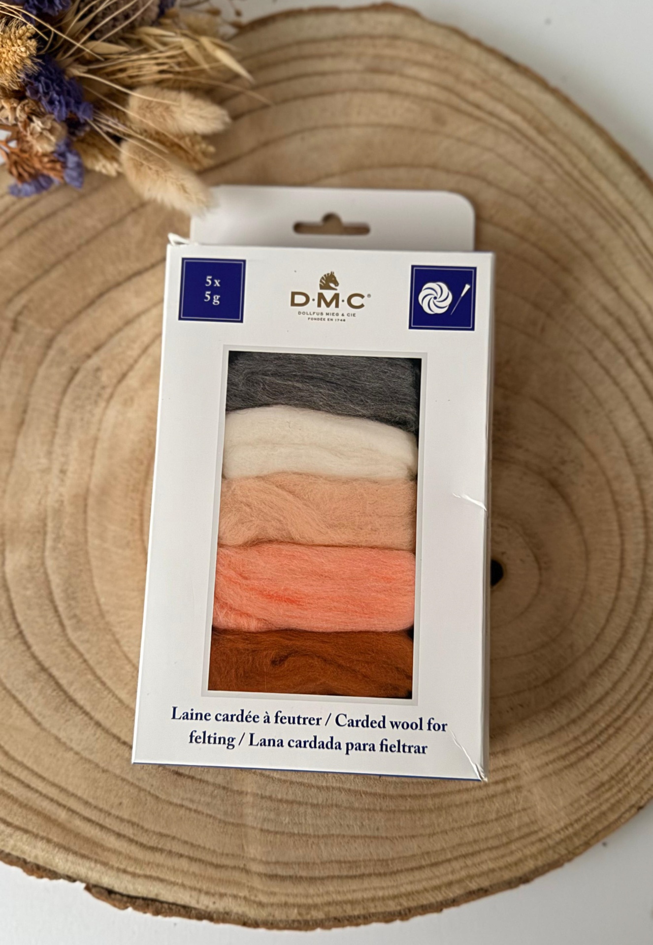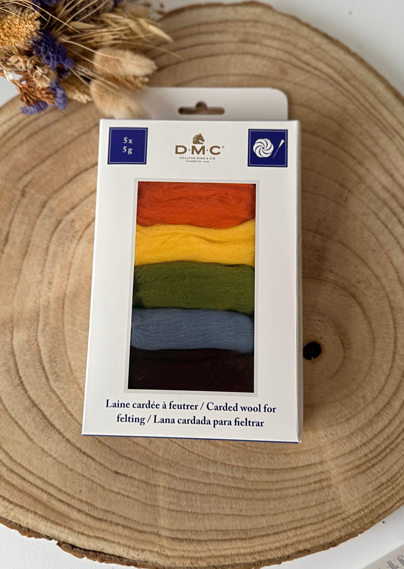 Lã cardada para Feltragem - Pack 5 Cores DMC