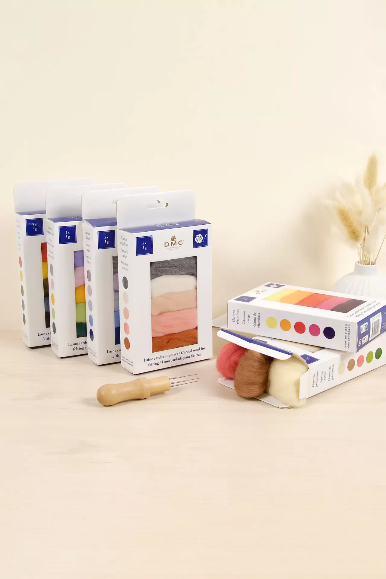 • Lã cardada para Feltragem - Pack 5 Cores DMC