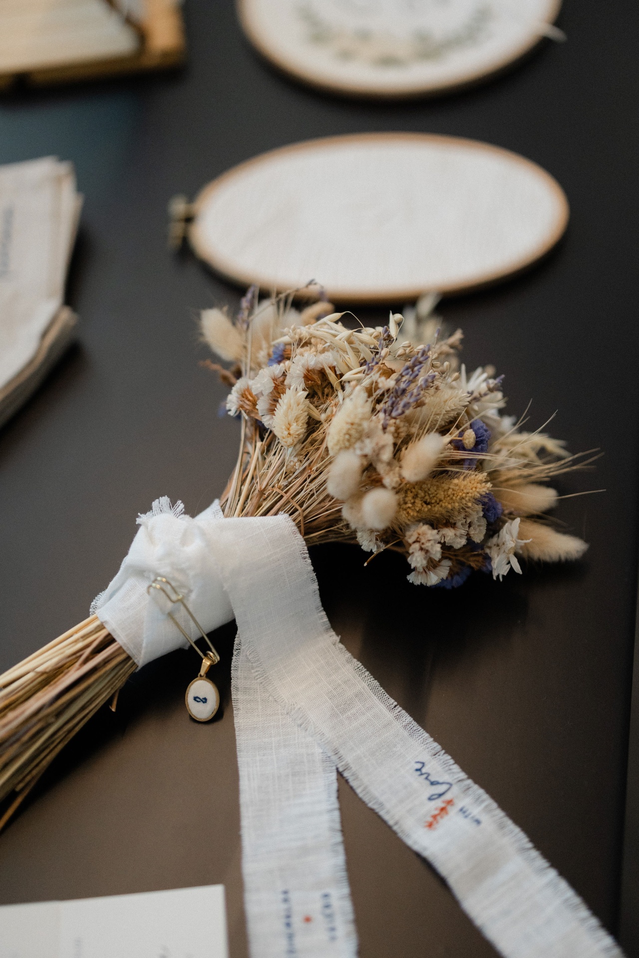E para tornar tudo ainda mais especial, juntei-me à querida Catarina Ferreira ( Catarina Ferreira Atelier) e ao encomendares o buquê de noiva com ela, juntamente com a Fita de Ramo Bordada à Mão, oferecemos-te um presente: o medalhão bordado e uma flor de lapela OU um gancho de flores secas, à tua escolha, como gesto de carinho e para celebrar esta nossa parceria bonita.
